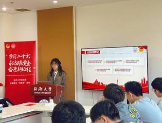 首先,团支部书记陈沛雯通过生动的PPT讲解及有关视频回放带领同学们学习了党的二十大报告要点与重要精神,引发了同学们热烈反响,同学们深刻认识到生逢盛世,
