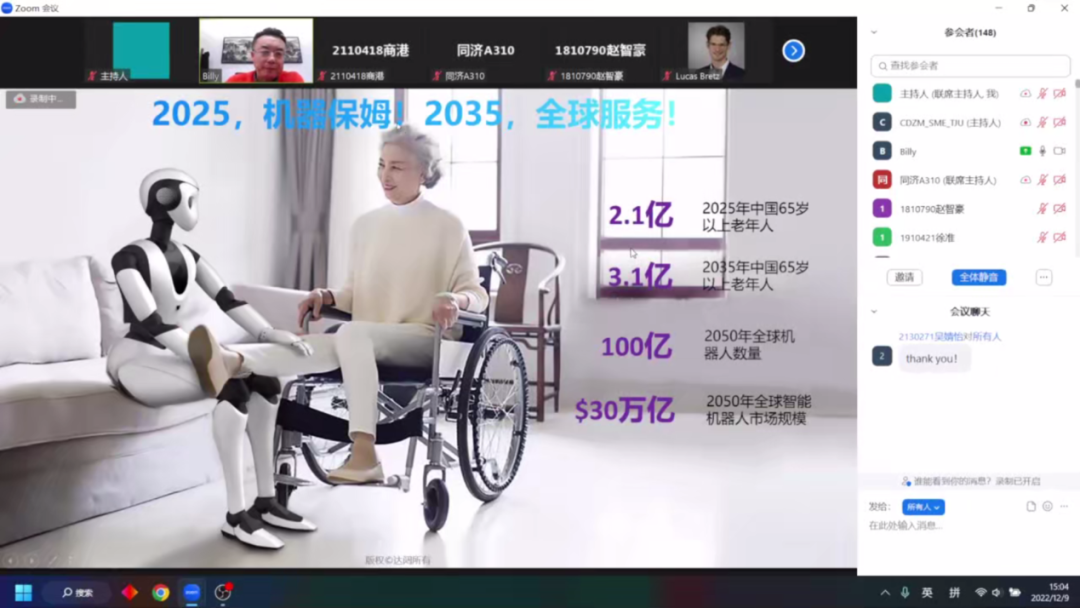 最后,王斌老师提出在2025年,人形机器人能走进家庭;到2035年,服务型机器人能走遍全球的美好愿景。