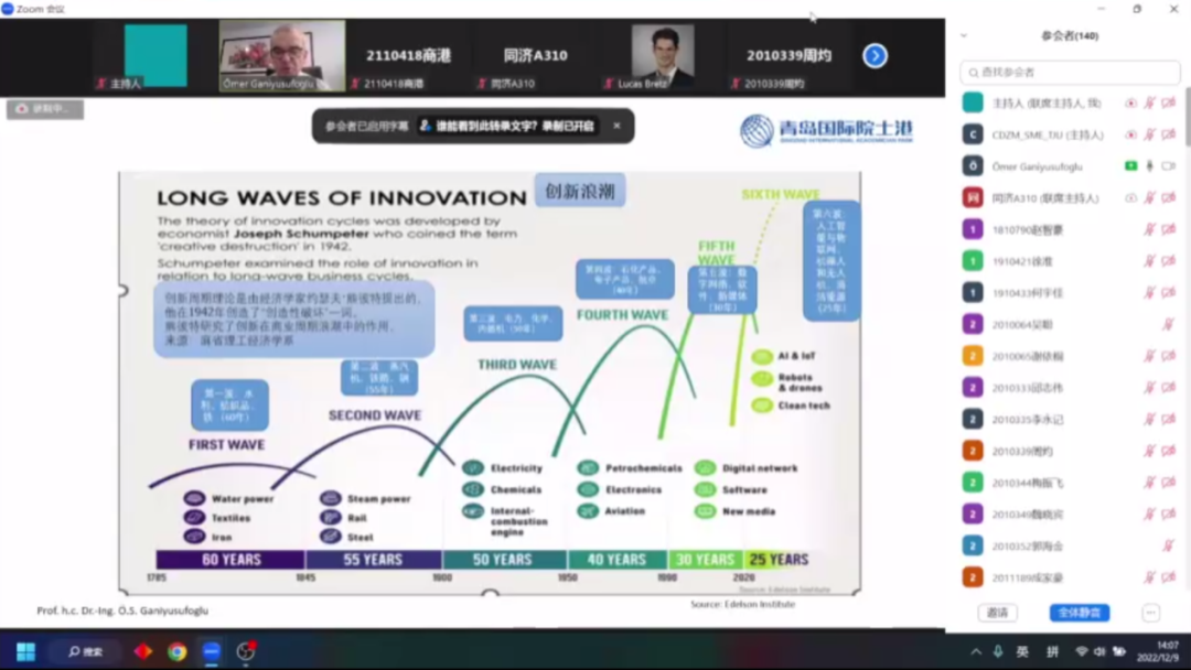 葛兴福教授讲述了创新周期理论,以及创新在商业周期浪潮中的作用。从时间轴上看,葛兴福教授梳理了六波创新浪潮,从1785年-1845年关于水利、纺织品、铁的创新再到2020年至今的人工智能与物联网、机器人和无人机、清洁能源等,创新内容在不断刷新迭代。葛兴福教授提到,今天的数字化已经成为人们日常生活中的一部分,我们可以通过数字化很容易地与世界各地的朋友交流。