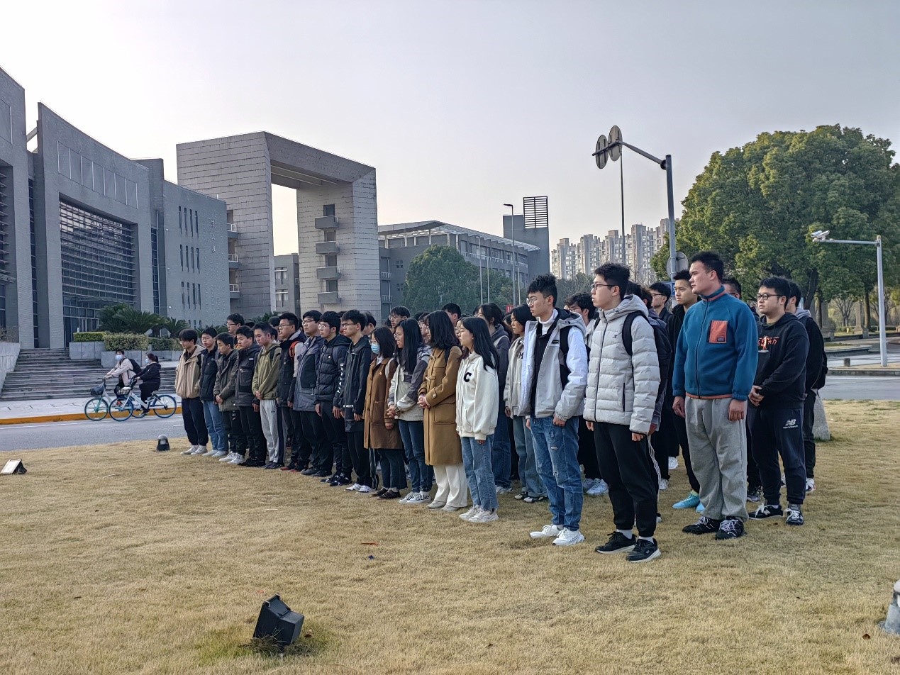 上午7时20分,朝晖散去寒意,热血更胜寒风,升旗仪式正式开始。国旗护卫队精神抖擞,口号响亮,迈着铿锵有力的步伐走向升旗台。全体同学怀着拳拳爱国之情庄严肃立,伴随着升旗手一声响亮的“向国旗敬礼”,雄壮的国歌在耳边响起,鲜艳的五星红旗迎着晨曦冉冉升起。