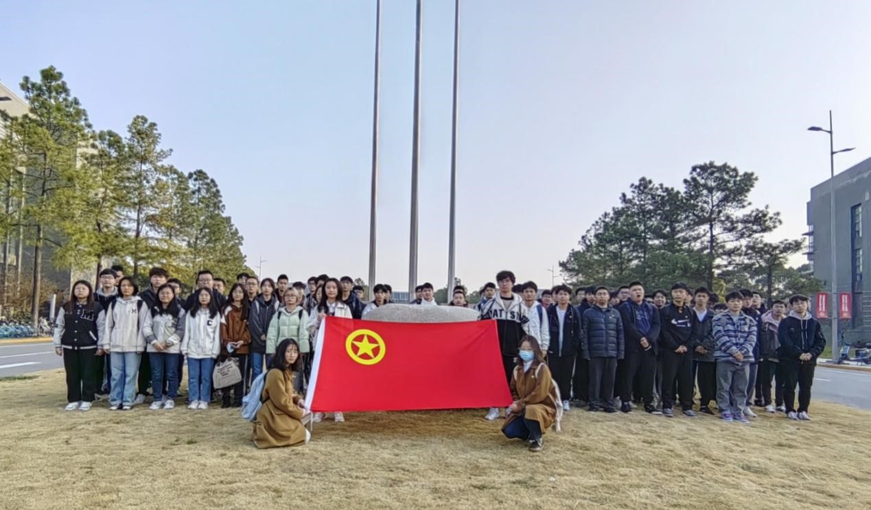 活动的最后 ,同学们簇拥着团旗,在升旗台前合影留念。