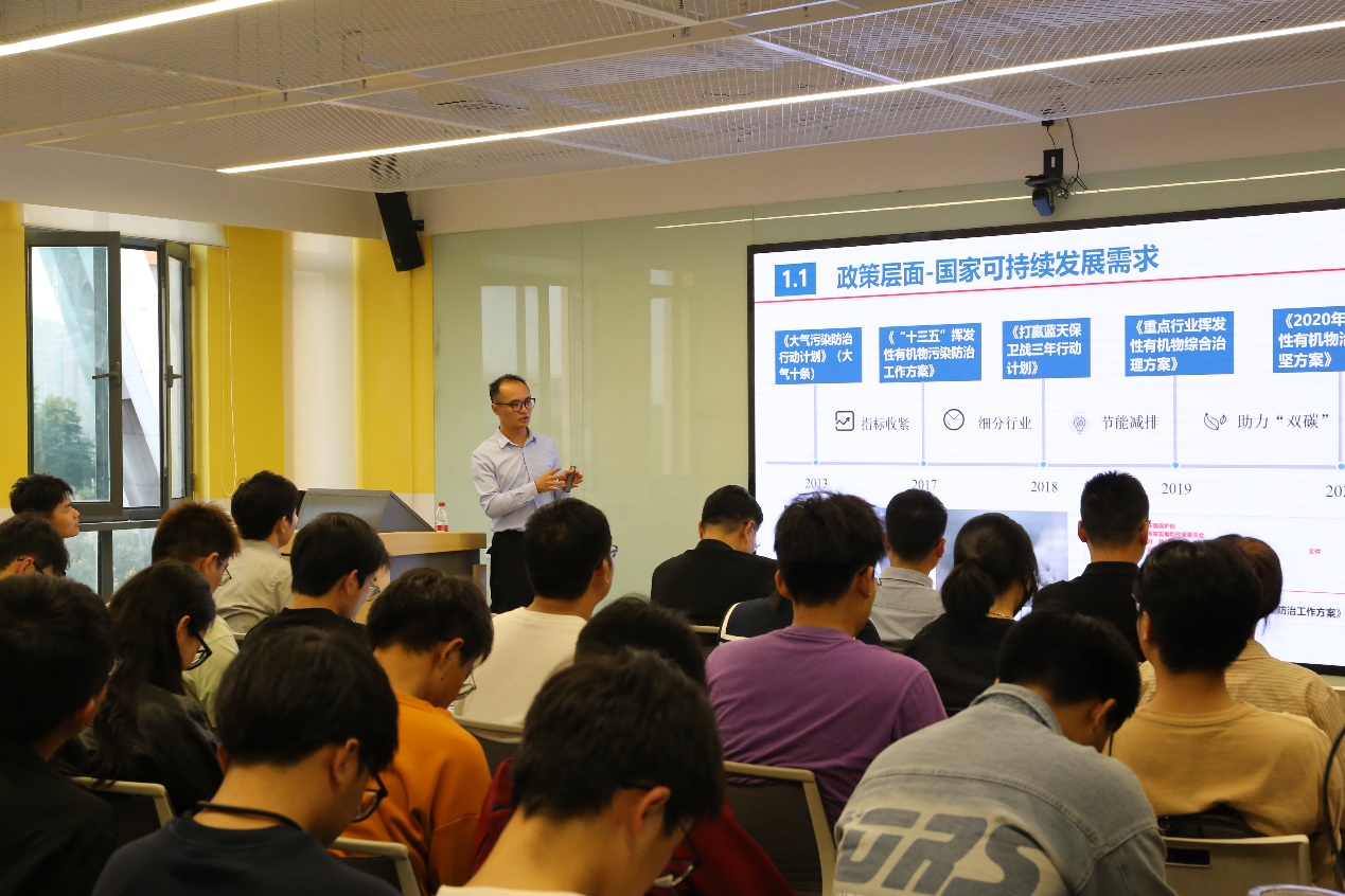 曾令杰助理教授研究工作的出发点是将流体动力学理论与技术创新用于室内空气污染源辨识与通风控制,聚焦室内空气自由(对流)扩散流动的反演动力学、有组织流动的捕集动力学与定向定点流动的气流反向设计,主持国家自然科学基金青年项目与中国博士后科学基金面上项目各1项;发表SCI论文40多篇,其中以第一、第二或通讯作者在本领域重要国际期刊发表SCI论文21篇;获上海市科技进步二等奖、同济大学2020年度优秀博士学位论文、上海市博士后日常经费资助、第二届华人能源与人工环境国际学术会议最佳口头报告、全国暖通空调模拟学术年会优秀论文、Ventilation 2015 国际学术会议Best Poster奖等。本次论坛中曾令杰助理教授的报告主题为“面向橡胶工业废气污染散发的高效通风节能技术”。曾令杰助理教授的报告聚焦于橡胶工业废气循环提浓、废气高效收集、通风系统运行节能的多层次目标要求,深度解析橡胶工业废气污染的散发特征与设计风量、运行风量之间内在关系,突破废气散发过程合理描述的理论限制和实验局限,实现典型厂房多设备污染集中高效收集与精细化通风的技术创新,建立面向橡胶工业的新型高效节能通风系统的关键设计参数及运行模式。报告中的研究为解决橡胶工业废气污染问题提供了新的思路和解决方案。这一创新性技术的成功研发与应用,将极大地推动橡胶工业的可持续发展,提升其环保水平和社会责任感。本次报告帮助同学们了解并掌握这一新型高效节能通风系统的核心技术和应用前景,激发了更多同学对环保科技的兴趣和热情。