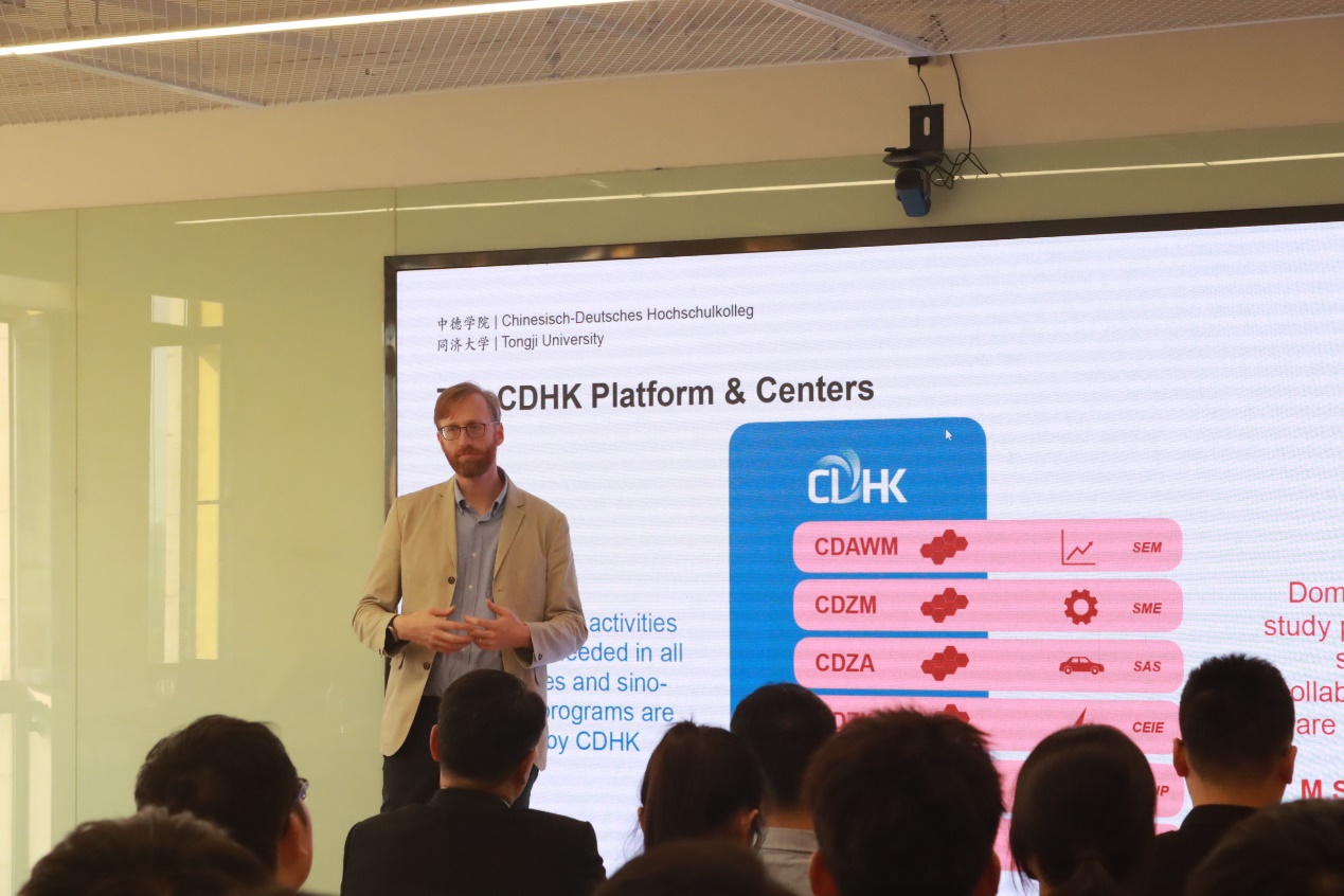 Jan Harder教授于2014年在慕尼黑工业大学获得博士学位,主要从事空间机器人研究。2018年到2021年,作为科学协调员帮助慕尼黑工业大学建立了慕尼黑机器人与机器智能研究所 (MIRMI),与所长Sami Haddadin教授一起负责研究所的运营和发展。2021年至今在同济大学负责中德科学交流工作。2023年3月起担任CDHK德方副主任,负责跨文化教育与商业企业关联。本次论坛中Jan Harder教授的报告主题为“Academic Work and Life in Germany”。Jan Harder教授在讲座中分享了学生在德国大学的学术生涯,分为学士/硕士学习阶段和博士阶段。在学士和硕士学习阶段,德国大学的学习模式注重实践性和创新性,课程设置十分广泛,为学生提供了丰富多样的选择。在博士阶段,德国大学的研究环境为博士生提供了深入研究的机会。博士生的研究工作通常在研究实验室或研究机构中进行,与导师和其他研究人员紧密合作。德国大学的学术生涯是充满挑战与机遇的,除了在学业和工作条件方面存在明显的形式差异外,德国大学的生活也为外国学生和博士生提供了丰富多彩的社会和日常生活体验。