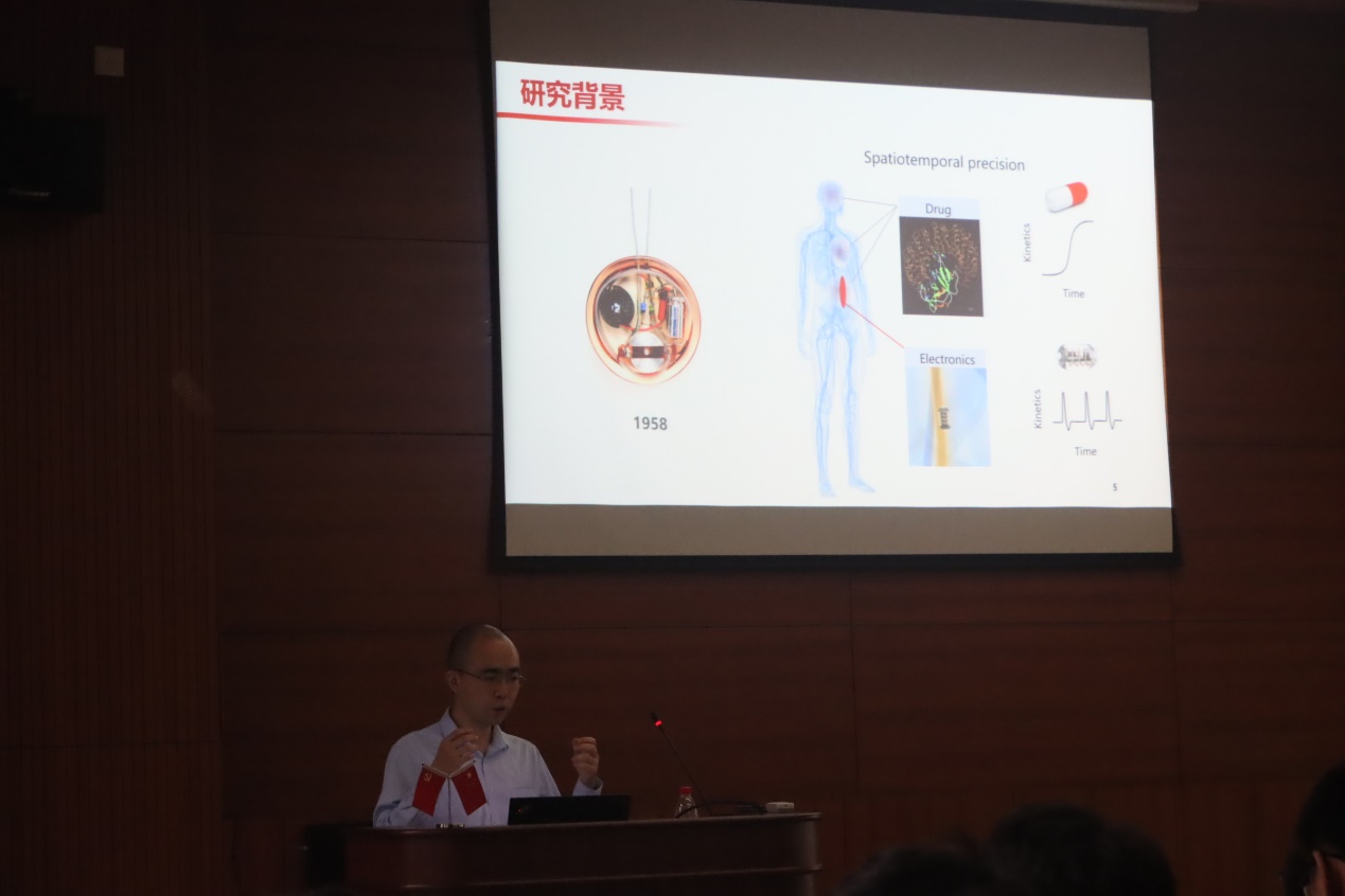 本次讲座主要分为研究背景,代表性成果,代表性学术评价及影响。在研究背景部分,熊教授首先就无线柔性微型化生物电子的应用历史与场景做了简要介绍。无线柔性微型化生物电子的概念与初步应用是从上世纪五十年代开始的。发展至今,我们常见的智能手环、血压计等可穿戴电子设备,其实都算是无线柔性微型化生物电子的应用案例。然而,往更细微,更柔性,更便携的方向发展,该领域还面临着生物兼容、易受干扰、低灵敏度等更多问题亟待解决。而熊教授主要聚焦于数字化创伤管理领域。