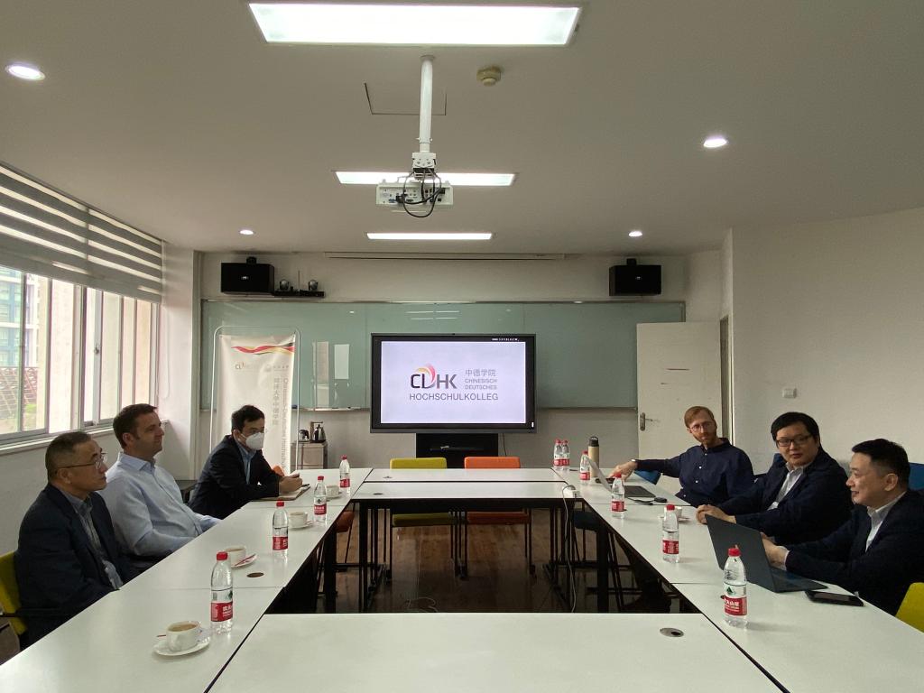 副院长闵峻英、中德机械工程中心副主任王家海等参加研讨,就同济大学对德合作2.0战略、中德博士生院等展开讨论。
