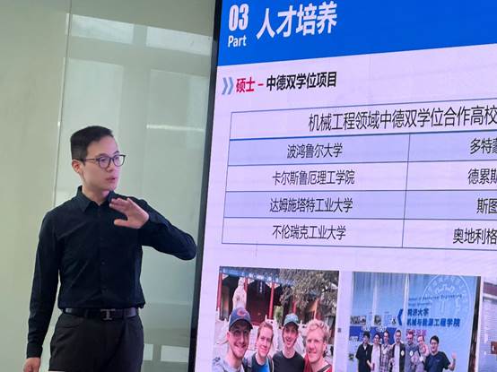 历史、中心概况、中德教学与科研合作平台“三中心一基地”等方面对中心进行介绍,并重点阐述中德合作本硕博培养体系。中德机械工程中心依托同济大学的多个中德合作平台,围绕中德联合研究中心(同济大学)智能科技和绿色发展两大主题,开展科教融合、本研贯通的高质量人才培养,多维度落实同济大学对德合作2.0战略。随后代表团在Christopher Ehrmann带领下参观先进制造技术中心实验室(AMTC)。