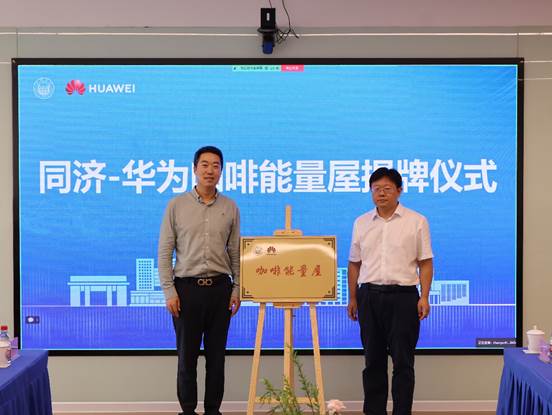院长李智军、华为上研所副所长熊张亮共同为同济-华为咖啡能量屋揭牌,开启双方在科研攻关、人才培养等方面合作的新篇章。