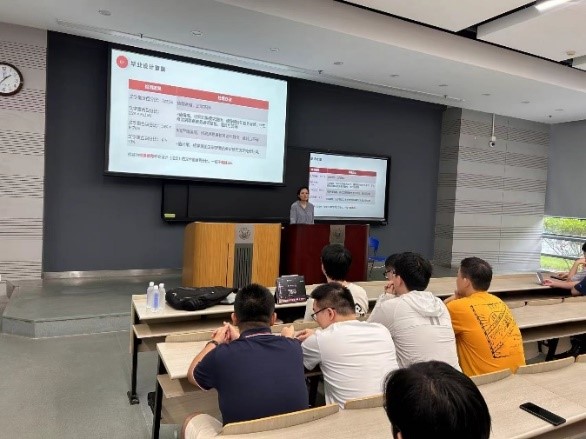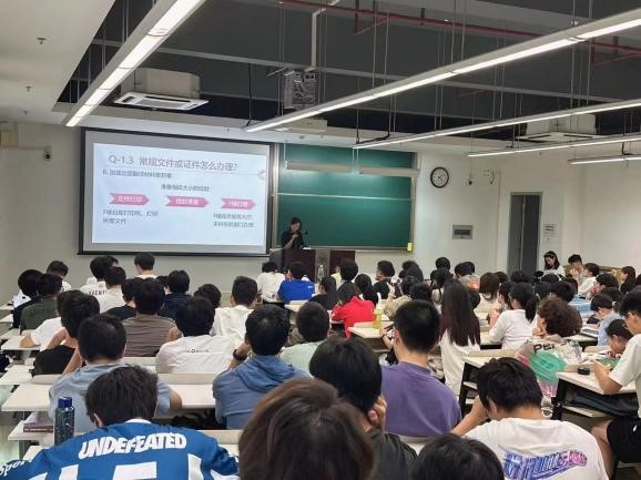 学工办刘亚男老师针对各项证明材料办理、证件补办等常见问题,为2023级同学对本科生学生事务和入党流程进行了讲解。