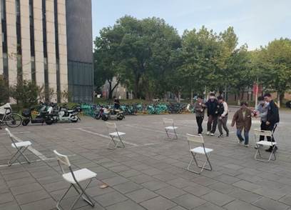 下午16:00,伴随着致臻楼大楼前浓烟升起,急促的消防警报响起,参与演习的师生及物业人员在疏散引导员的指引下,用毛巾捂住口鼻,迅速、有序、安全地从大楼内向前广场撤退。2分钟内全体人员按预定的疏散路线迅速撤离到指定地点,并对人员进行清点。