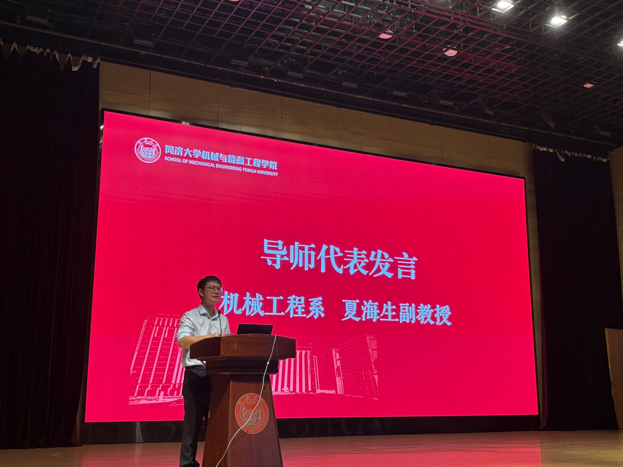 机械工程系夏海生作为导师代表发言,夏老师寄语同学们在即将开始的学术旅程中葆好奇之心、做敢于提问的“探路者”,恪守学术匠心、做甘于寂寞的“耕耘者”,砥砺健全人格、做善于合作的新时代“担当者”,祝愿同学们在未来的日子里,能够发现自我、拓展认知、收获智慧、缔结友谊,成为更好的自己,走向光明的未来!。