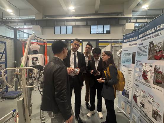 、学校及研究所、大模型驱动外骨骼相关领域科研情况,计划在科研项目、青年教师交流、德籍兼职教授引进方面重点展开合作。Lorenzo Masia教授所在的慕尼黑机器人与机器智能研究所,是慕尼黑工业大学顶尖研究机构,以“具身智能”为理论核心,聚焦机器人动态控制、机器智能学习、人机交互等领域,在机器智能基础突破与行业落地均有显著产出。他对双方合作寄于厚望,以此次访问为契机,逐步推进机器人领域各层次中德合作。