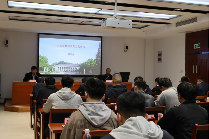 兼职教授阎荣安以《大别山精神及其时代价值》为题授课,他结合体现大别山精神的壮阔革命历史和典型人物故事,系统阐释了大别山精神的内涵及其在新时代的价值,生动详实的讲解让红色基因真正入脑入心。