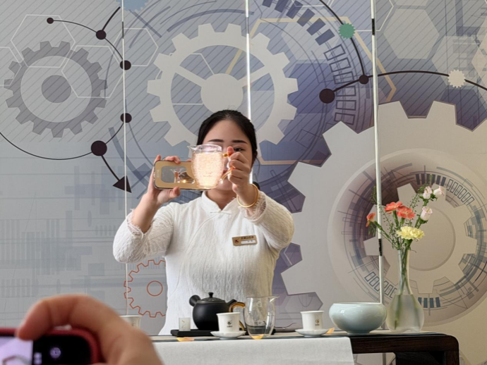 接着,专家通过茶叶冲泡,展示了禅茶礼仪。在互动体验的过程中,大家共同度过了一段宁静而放松的时光。
